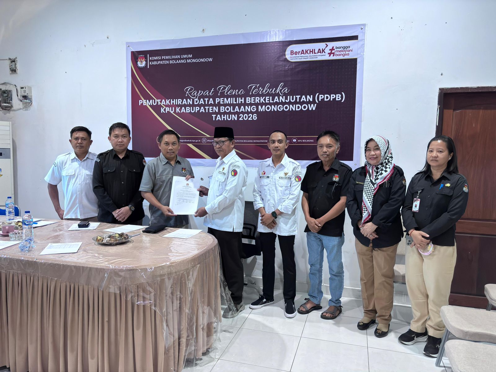 Ketua KPU Bolmong, Afif Zuhri, SE, menyampaikan tindak lanjut rekomendasi Bawaslu terhadap pemilih meninggal yang masih tercatat dalam daftar pemilih. Dalam pleno tersebut, KPU menetapkan jumlah pemilih 192.702 orang, terdiri dari 99.844 laki-laki dan 92.858 perempuan.
