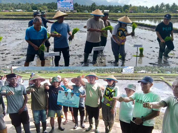 Gerakan tanam padi tersebut dilaksanakan di hamparan lahan pertanian seluas 30 hektare, dengan sekitar 28 hektare di antaranya telah ditanami padi. Gubernur YSK tampak ikut menanam padi bersama Bupati Bolaang Mongondow, jajaran Forkopimda, serta disambut antusias oleh kelompok tani dan masyarakat setempat.